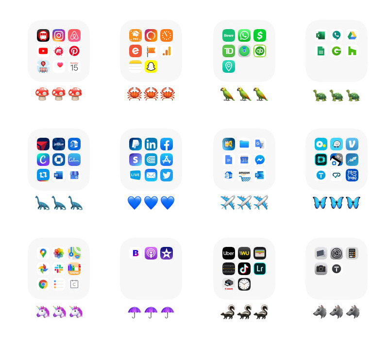 This is the most beautiful thing you can do to your phone and the good thing is, you can do if from the comfort of your couch while watching tv. To get started, delete apps you don’t use, select a plain background and group all the apps with the same color in folders. Within each folder select an emoji with the same color to use at the top. You already know the color for each app so don’t worry about not being able to find what you need. Test yourself, what is the color of your banking app? See you already know!